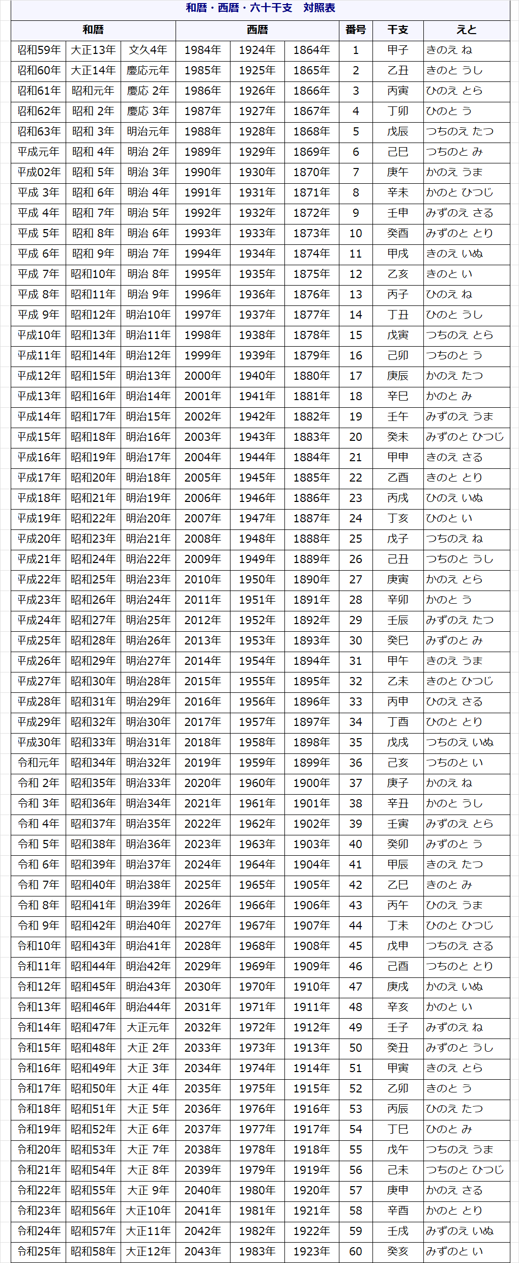 - 癸巳の年(例):…/…/…(60年ごとに巡回)